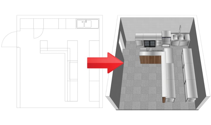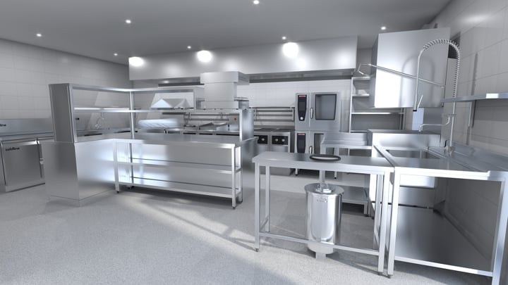 Une visite virtuelle à travers un projet de cuisine professionnelle.